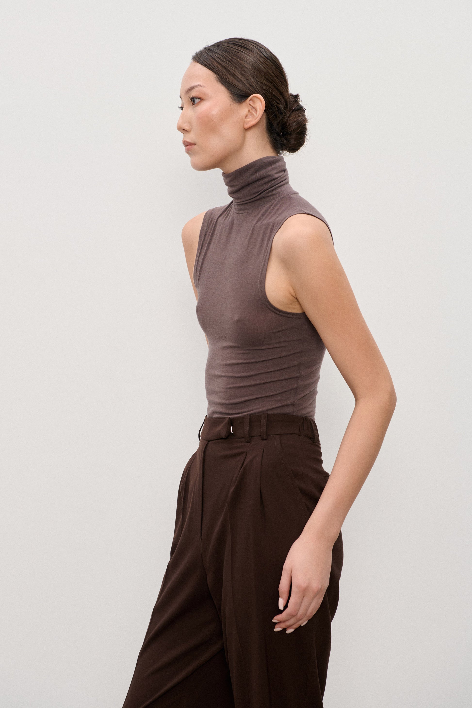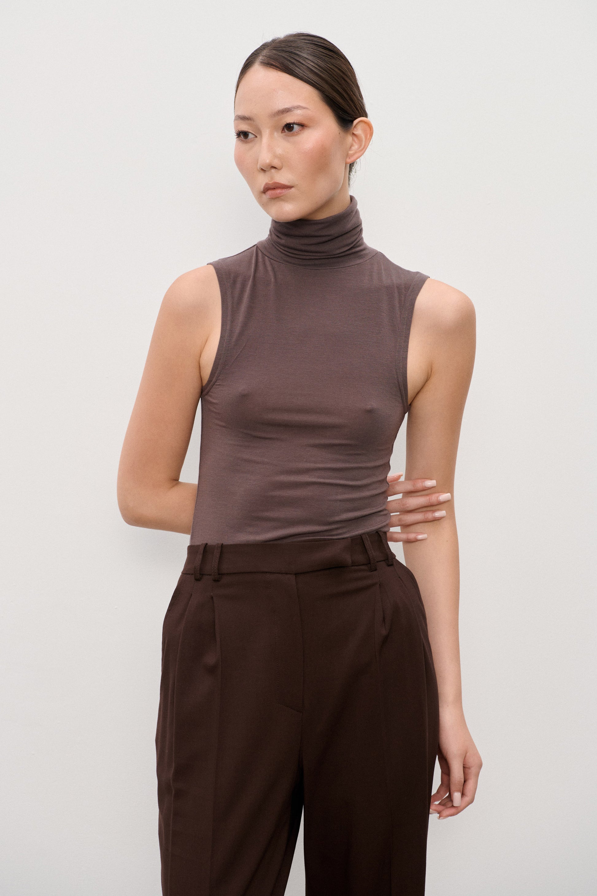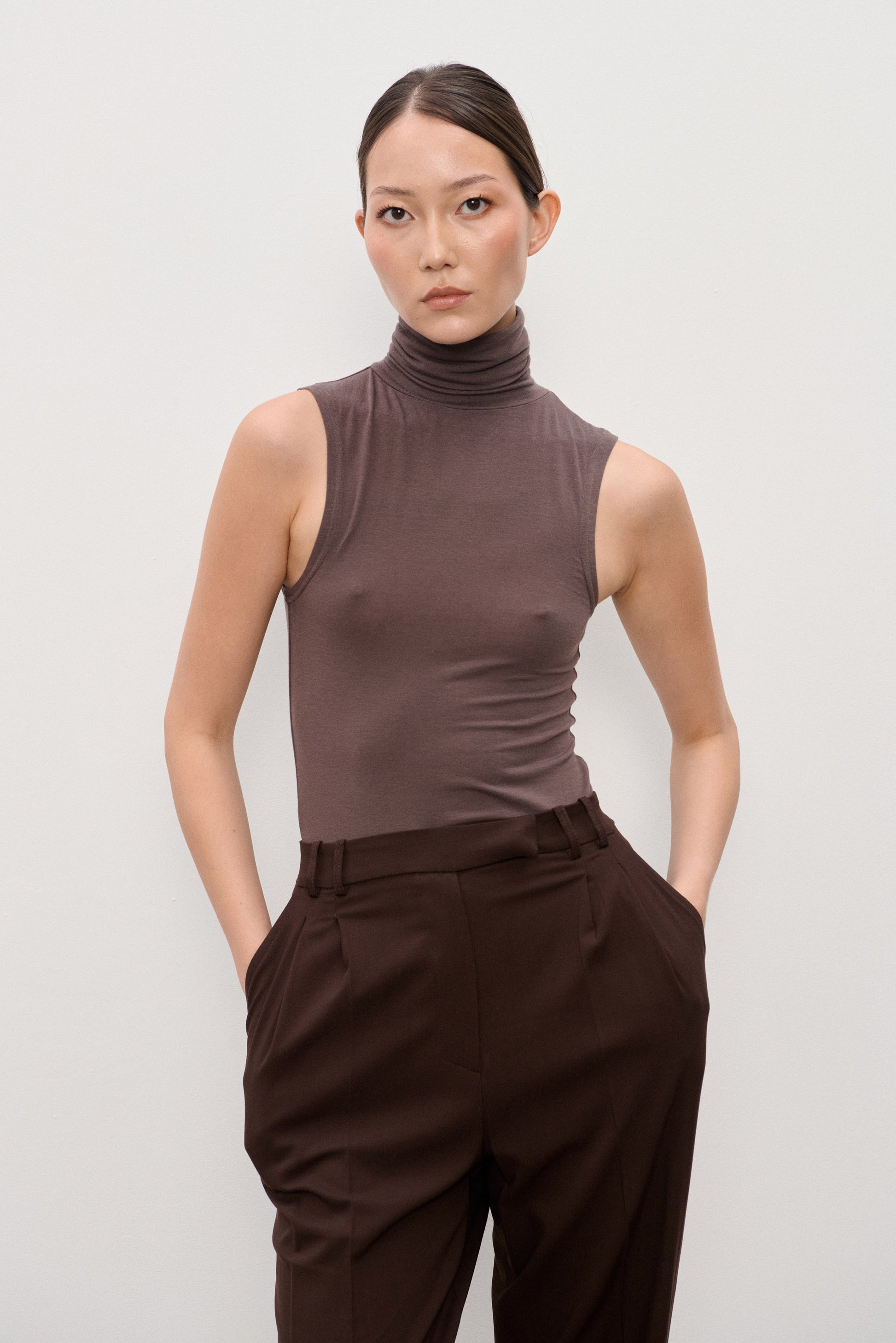 Miękki golf bez rękawów, wykonany z delikatnej dzianiny, zapewniający komfort i lekkość noszenia. Idealna baza pod marynarki, swetry i inne warstwy.