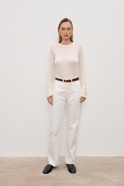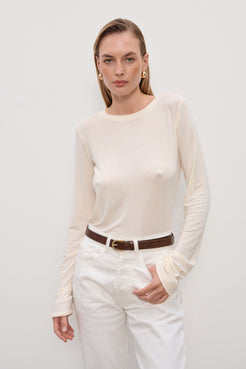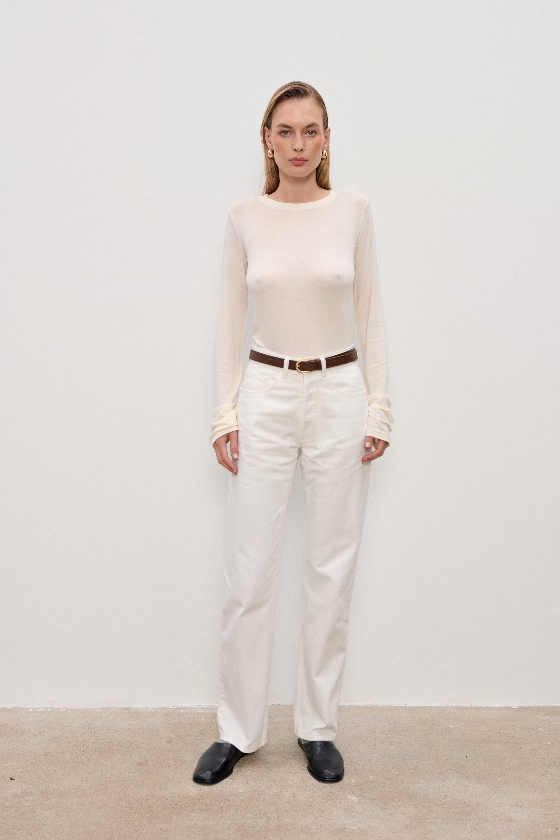 Miękki longsleeve z długimi rękawami, wykonany z dzianiny z mikro modalu i kaszmiru. Przyjemny w dotyku i komfortowy w noszeniu, stanowi idealną bazę pod marynarki, swetry i inne warstwy.