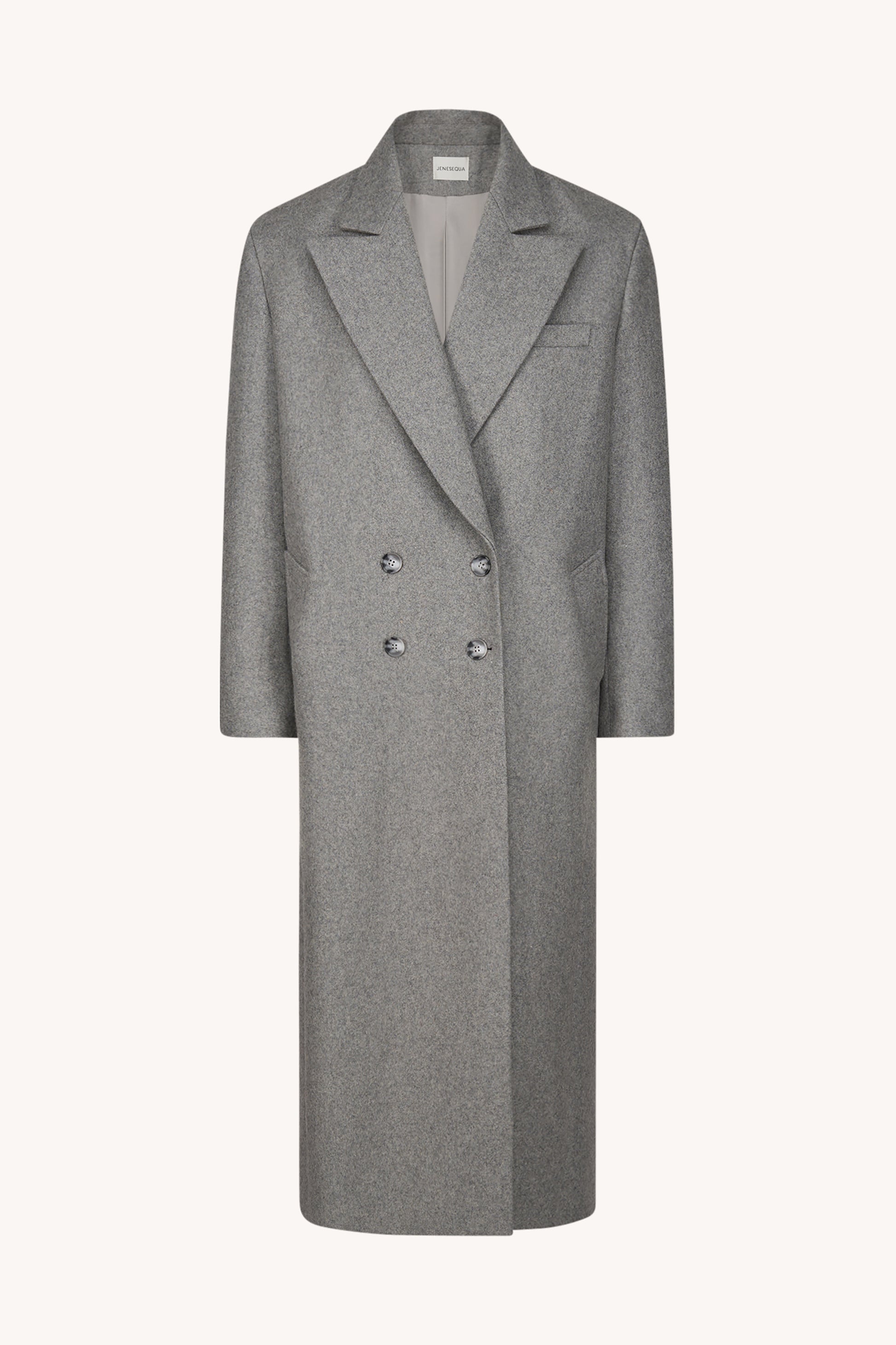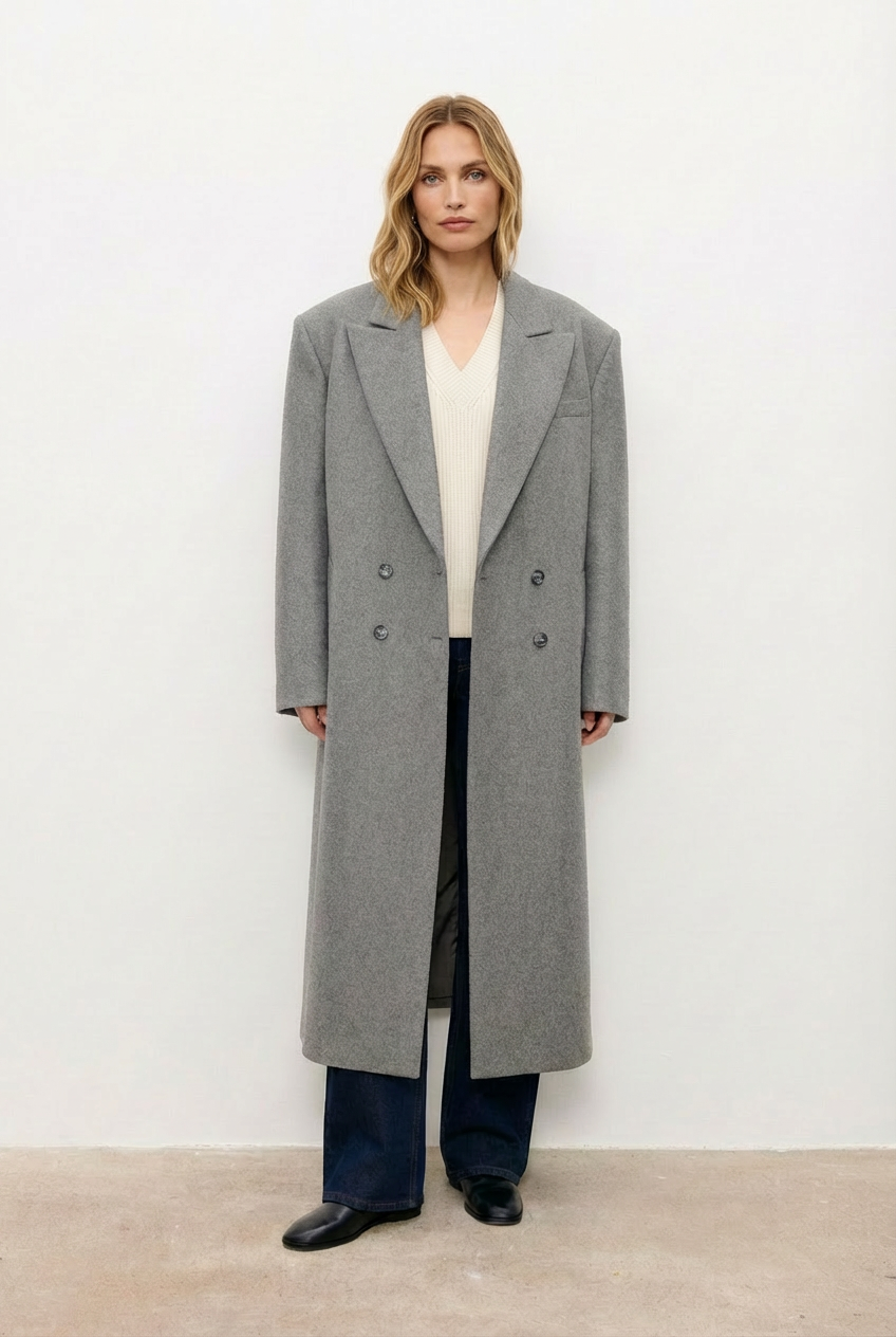 Klasyczny, lekko oversize’owy płaszcz wykonany z wełny. Zdobiony subtelnym kołnierzem i praktycznymi kieszeniami, z wygodnym zapięciem na guziki. W uniwersalnym odcieniu szarym, łatwo komponuje się z różnymi stylizacjami. Podszewka: 100% wiskoza.