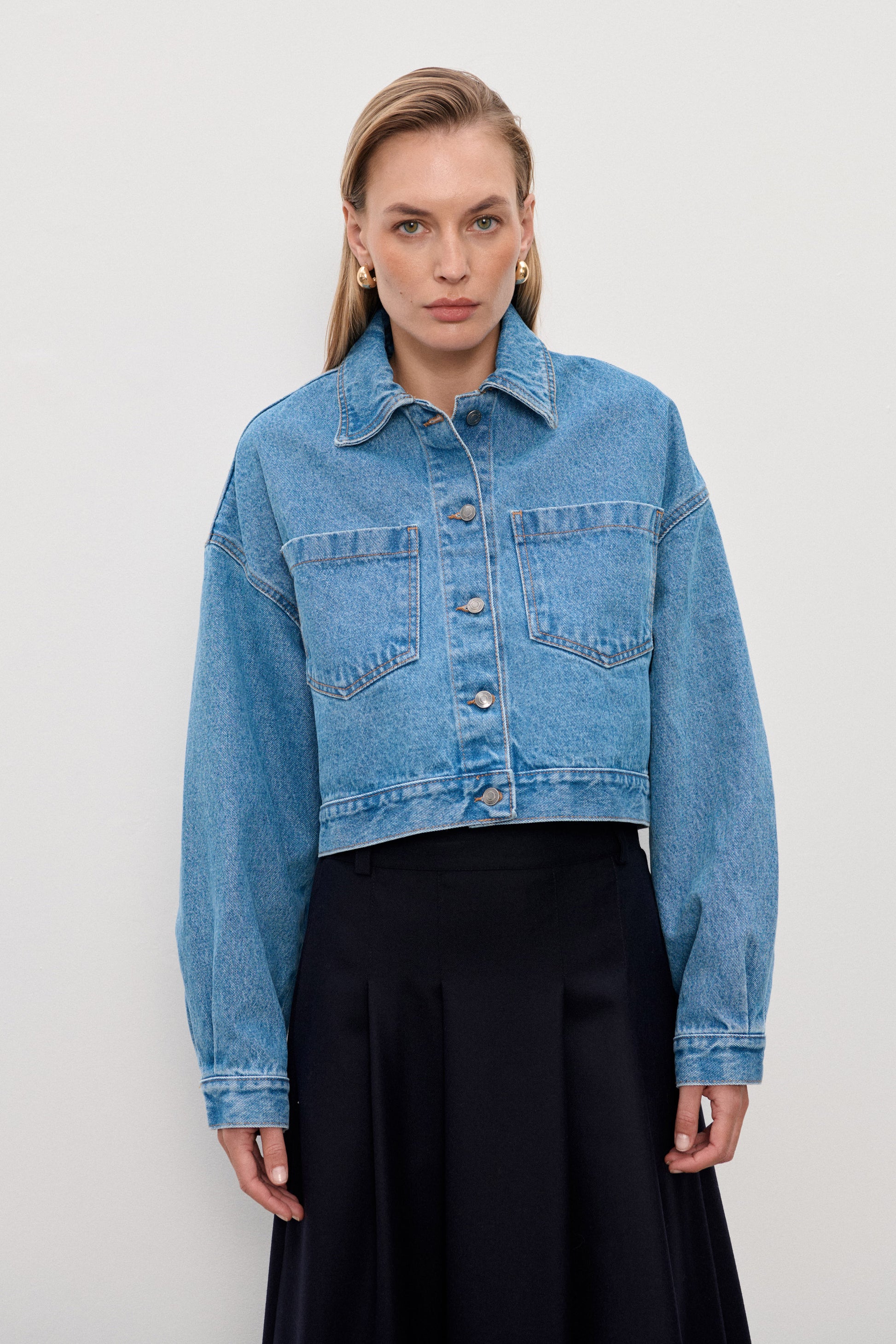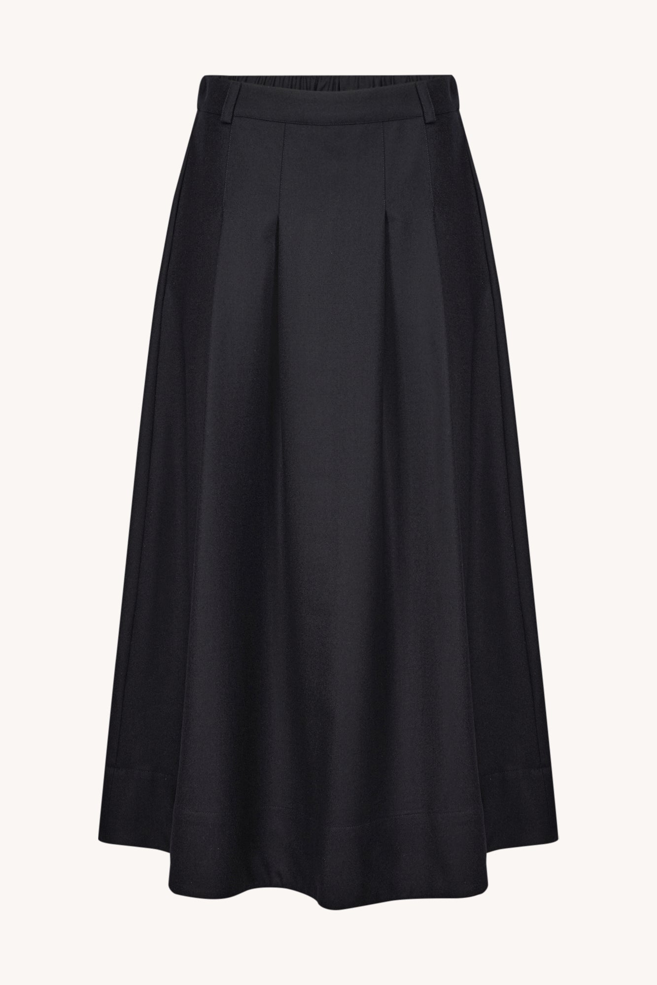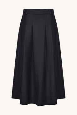 Wełniana spódnica Kristen w głębokim granacie, o kroju w literę A. Zapinana z przodu na kryte guziki i suwak. Doskonała do zestawów biurowych i casualowych.
