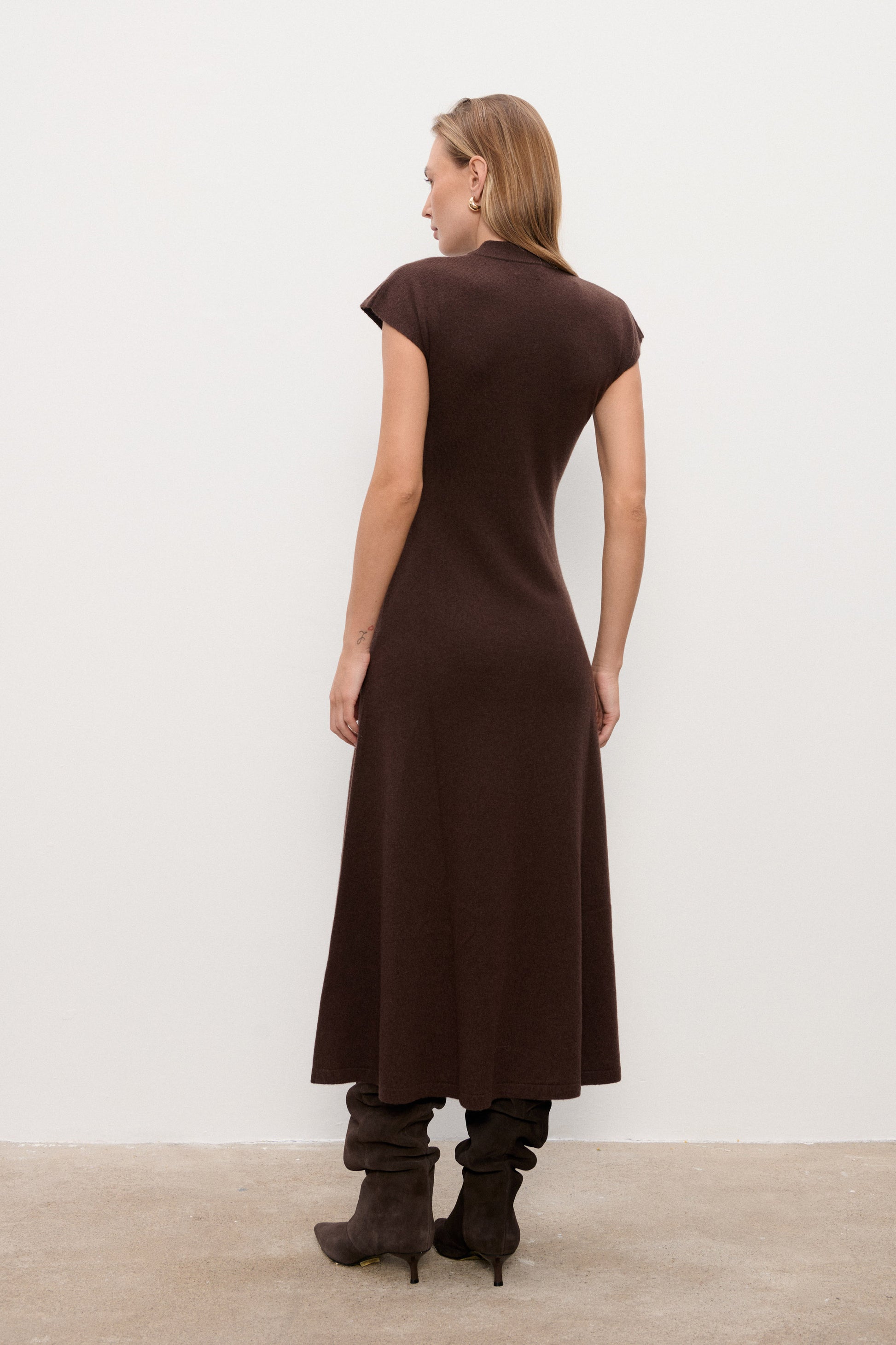 Sukienka Isabell Chocolate to elegancka i jednocześnie wygodna propozycja w głębokim, czekoladowym odcieniu, który doskonale wpisuje się w jesienno-zimowe stylizacje. Rozkloszowany krój w kształcie litery A subtelnie podkreśla talię, a delikatnie rozszerzane rękawy nadają całości lekkości.