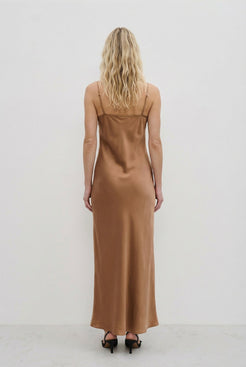 Jedwabny slip dress, który sprawdzi się w każdej sytuacji. W połączeniu ze sweterkiem i trampkami stworzy lekki miejski look, a założona do szpilek stworzy niezawodną wieczorową stylizację. Komfort noszenia zapewnią regulowane ramiączka. Całość wykonana jest ze spranego jedwabiu satynowego.