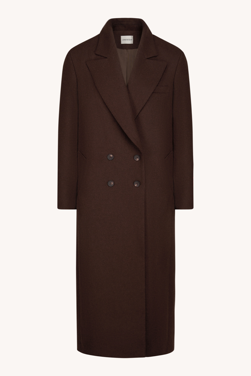 Wełniany płaszcz o eleganckim kroju, z ozdobnym kołnierzem i praktycznymi kieszeniami. Zapięcie na guziki dodaje wygody, a klasyczny brąz wprowadza ponadczasowy, ciepły akcent do każdej stylizacji.