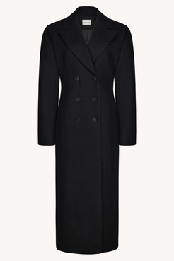 Taliowany płaszcz, który subtelnie podkreśla sylwetkę. Wykonany z wełny, ciepły i wygodny, z klasycznym kołnierzem i dwurzędowym zapięciem na guziki. Ponadczasowy element garderoby, który posłuży przez wiele sezonów.