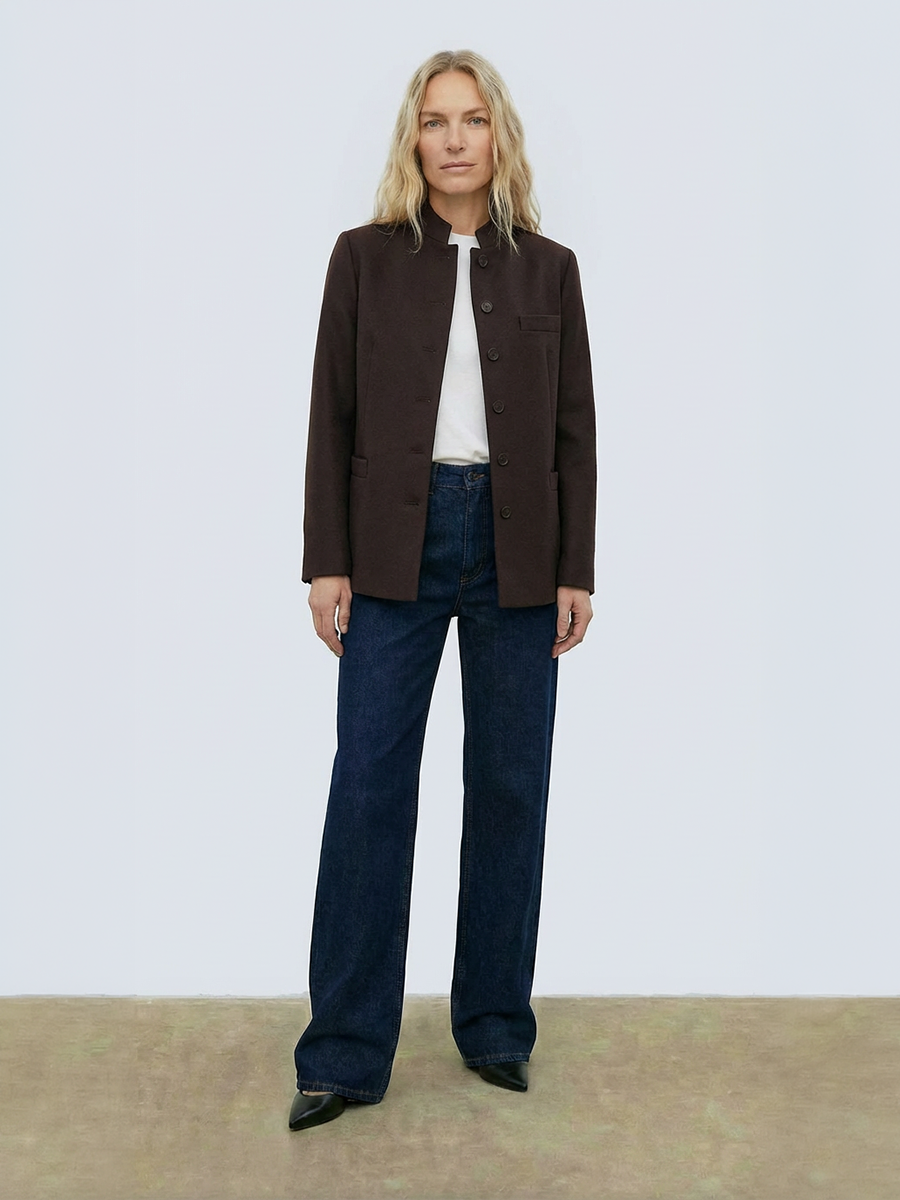 Spodnie Extra Long z wysokim stanem, o prostej nogawce to ponadczasowy model, absolutny must have w każdej szafie. Najwyższa jakość bawełny zapewnia komfort noszenia, a uniwersalny kolor pozwala na łatwość w doborze stylizacji. Zapinane na guzik, posiadają dwie przednie oraz dwie tylne kieszenie.