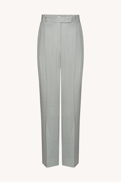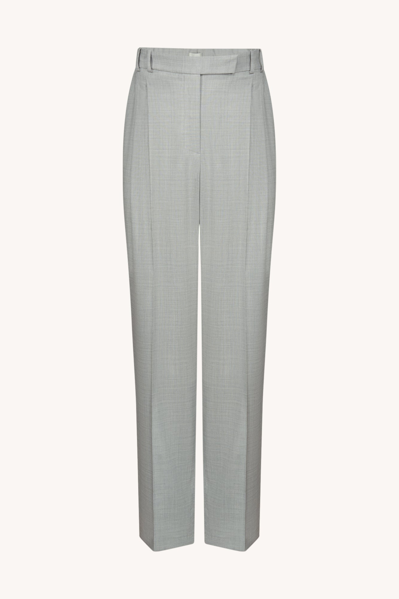 Wełniane spodnie garniturowe o klasycznym fasonie z nowoczesnym twistem. Szerokie nogawki ze składkami z przodu optycznie wysmuklają sylwetkę, a gumka z tyłu w pasie zapewnia komfort noszenia. Szary kolor sprawia, że spodnie są uniwersalne i idealne do biura, casualowych stylizacji lub na eleganckie wyjścia.