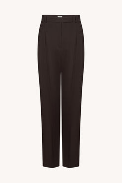 Spodnie garniturowe o klasycznym fasonie z nowoczesnym twistem. Szerokie nogawki ze składkami z przodu optycznie wysmuklają sylwetkę, a gumka z tyłu w pasie zapewnia komfort noszenia. Ciepły brązowy odcień dodaje stylu i sprawia, że spodnie doskonale sprawdzą się w casualowych i eleganckich zestawach.